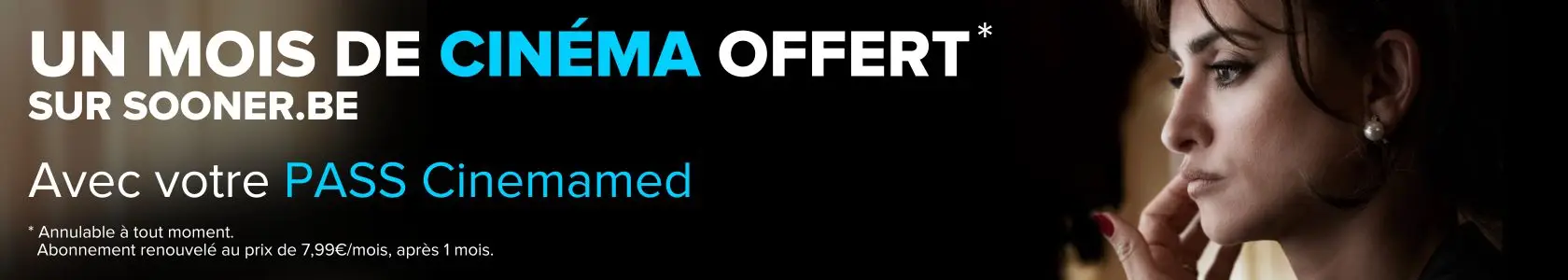 En bonus, recevez un mois de cinéma offert sur Sooner.be.